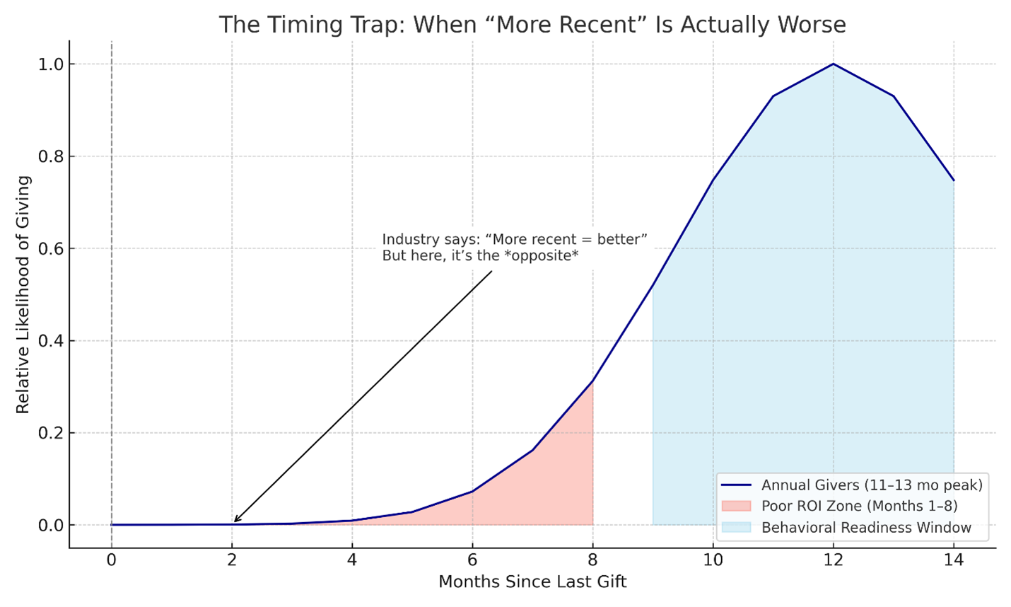 That’s the “Mode of 1.” And it’s not a niche group, it’s the dominant behavioral pattern in donor files across sectors, discovered not because anyone went looking for it, but because it kept showing up in the data.
