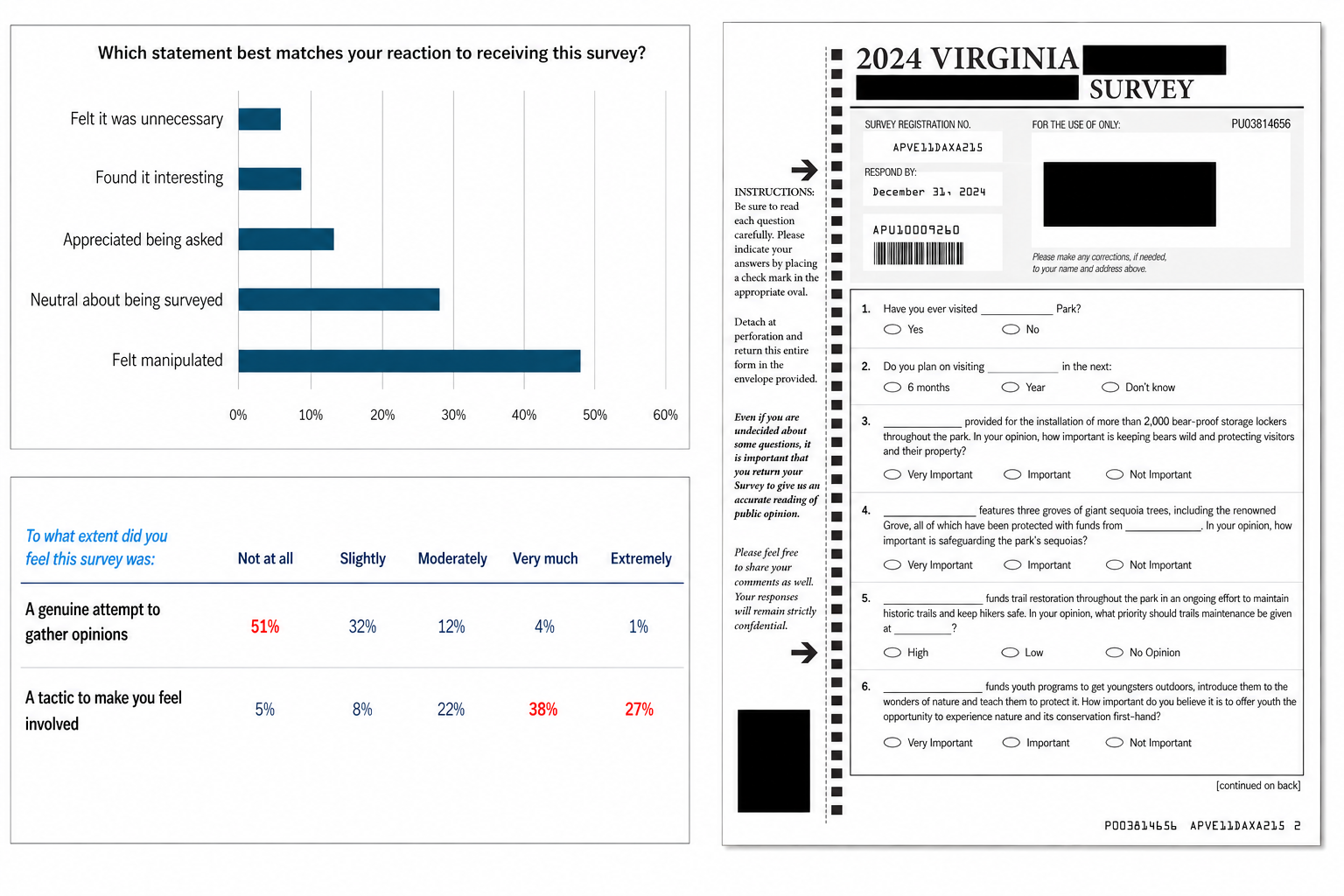 I get it, you want engagement and donors to feel heard. And someone, somewhere convinced you that a faux-official looking survey with a registration number and a barcode was the way to do it.